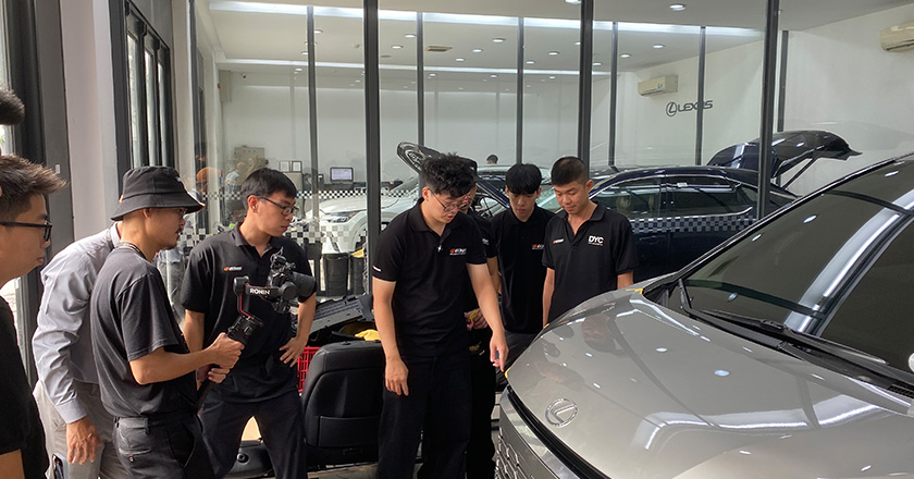 越南 LEXUS 對專業要求嚴謹,所有美容項目都在環境舒適的工作區內進行。多數基礎清潔由車廠員工負責,而核心施工則由 GZOX 團隊執行;從任務分配、備料、施工到完工檢查,整體流程井然有序。即使是最日常的走動也落實人車分離,員工不隨意走入車道,而是自律地行走在人行動線上,讓整個廠區在效率與安全之間取得很好的平衡,也展現出高度成熟的現場管理能力。